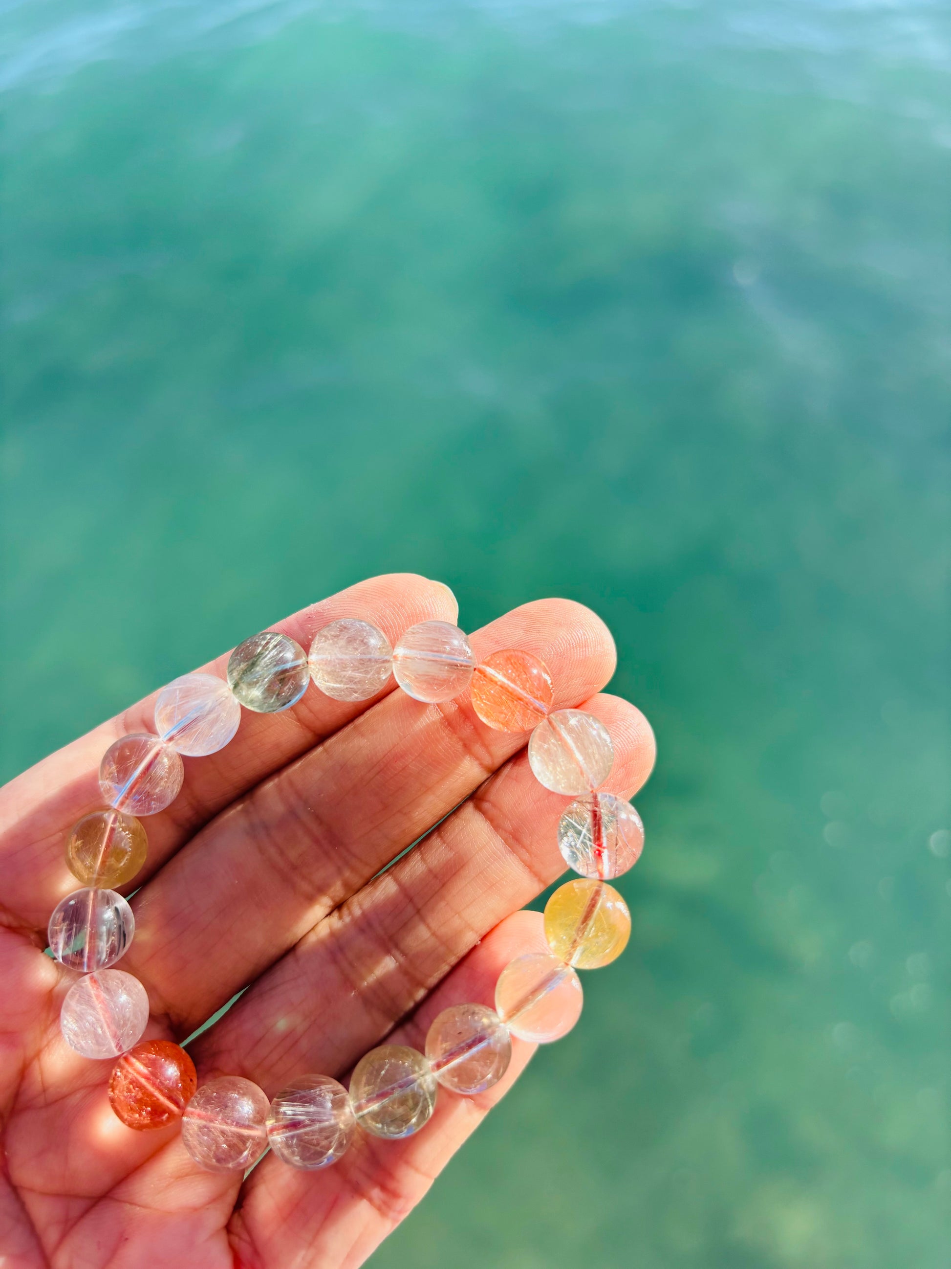 見た目は、金・銀・白・灰色などの細い繊維がクォーツの中にふわっと広がっており、柔らかく優しい印象を与えます。
