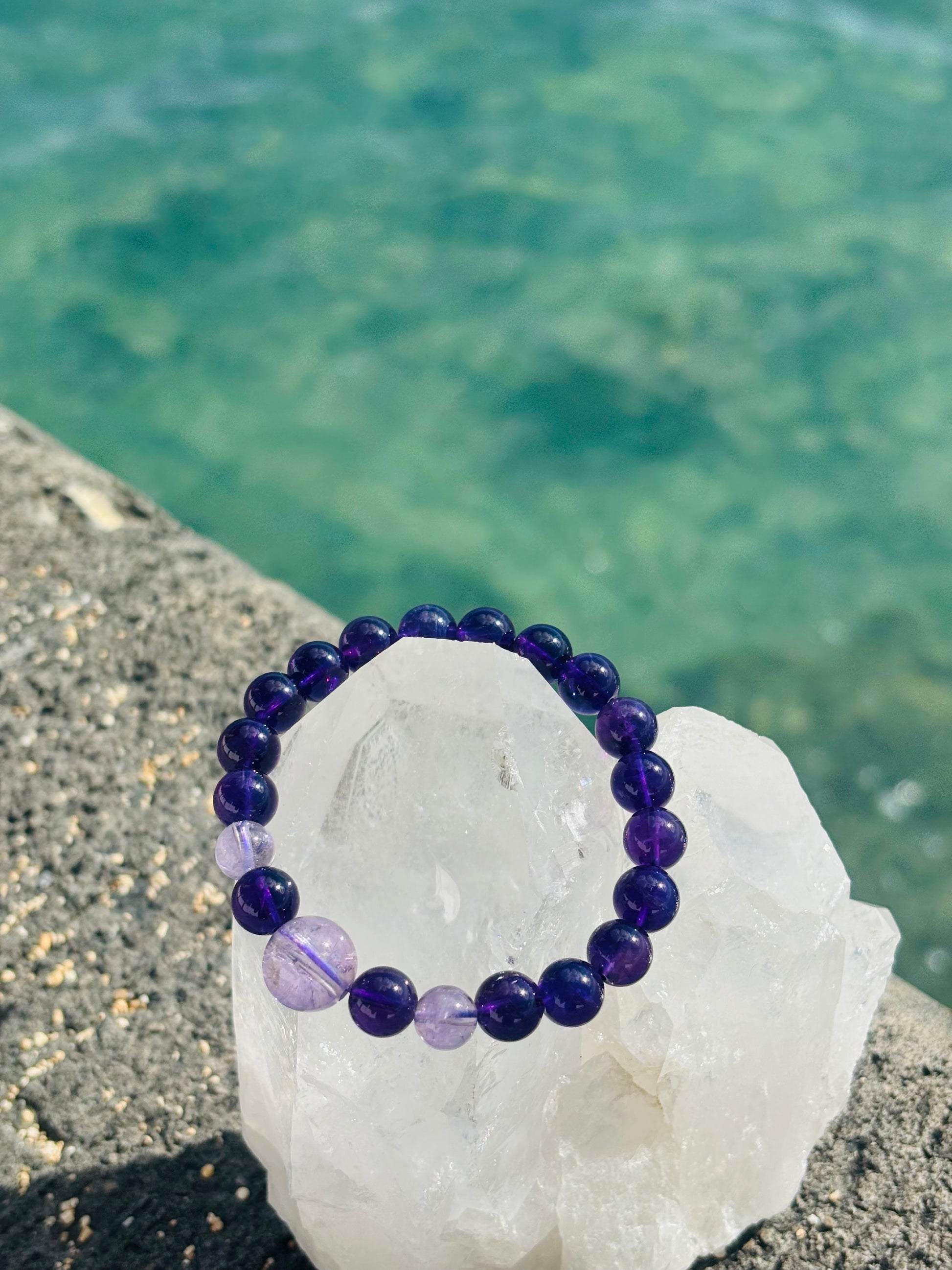 アメジスト(Amethyst)は、紫色の水晶(クォーツ)で、「癒し」「精神性」を象徴するパワーストーンです。古代から聖なる石として重宝され、今でも心を整えたいとき、スピリチュアルな成長をしたいときにとても人気があります。