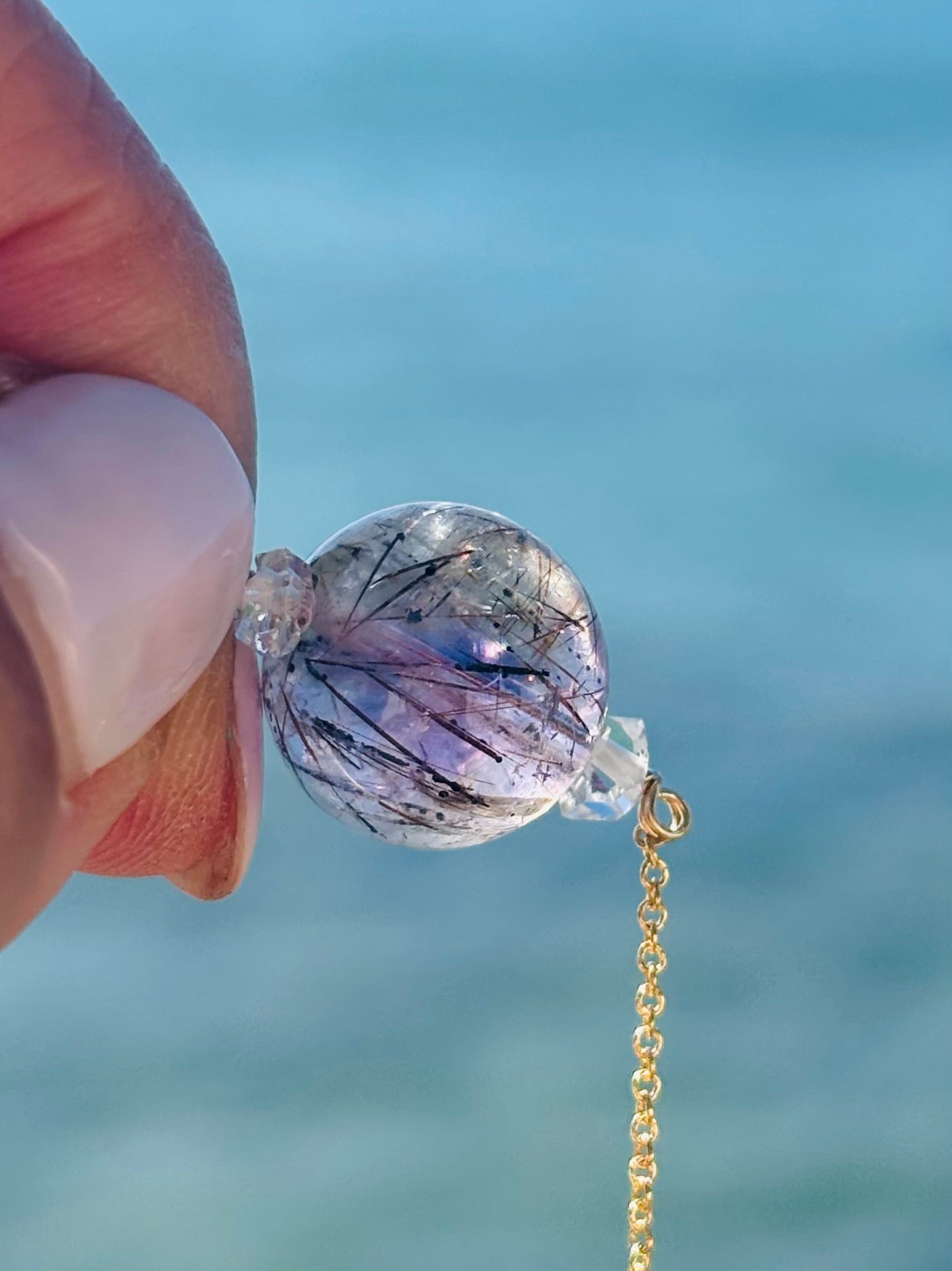 - スパーセブンは、この石は7種類の鉱物からなるレアな鉱物です。スーパーセブンの中のインクルージョンがしっかり詰まっていてキラキラの輝きがあります。太陽の光でご覧になるとさらに良さが分かります。ヒーリング効果が高いとされ、地球上の全てのものを癒すといわれています。過去のつらい出来事、トラウマを克服し、苦痛を和らげ力強い活力を与えます。
