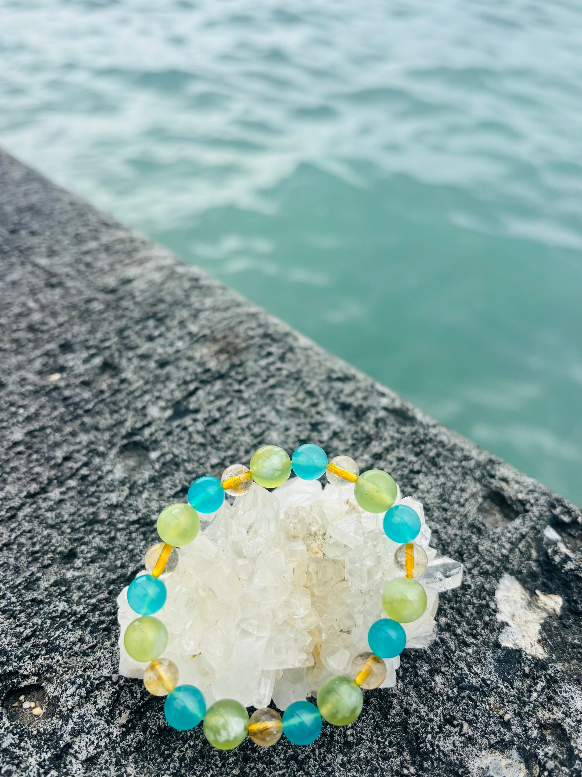 ヒスイ・アマゾナイト・シトリンを組み合わせたブレスレットは、心・行動・豊かさのバランスを整える“調和と前進”のエネルギーを持つとされる、とても魅力的な組み合わせです✨