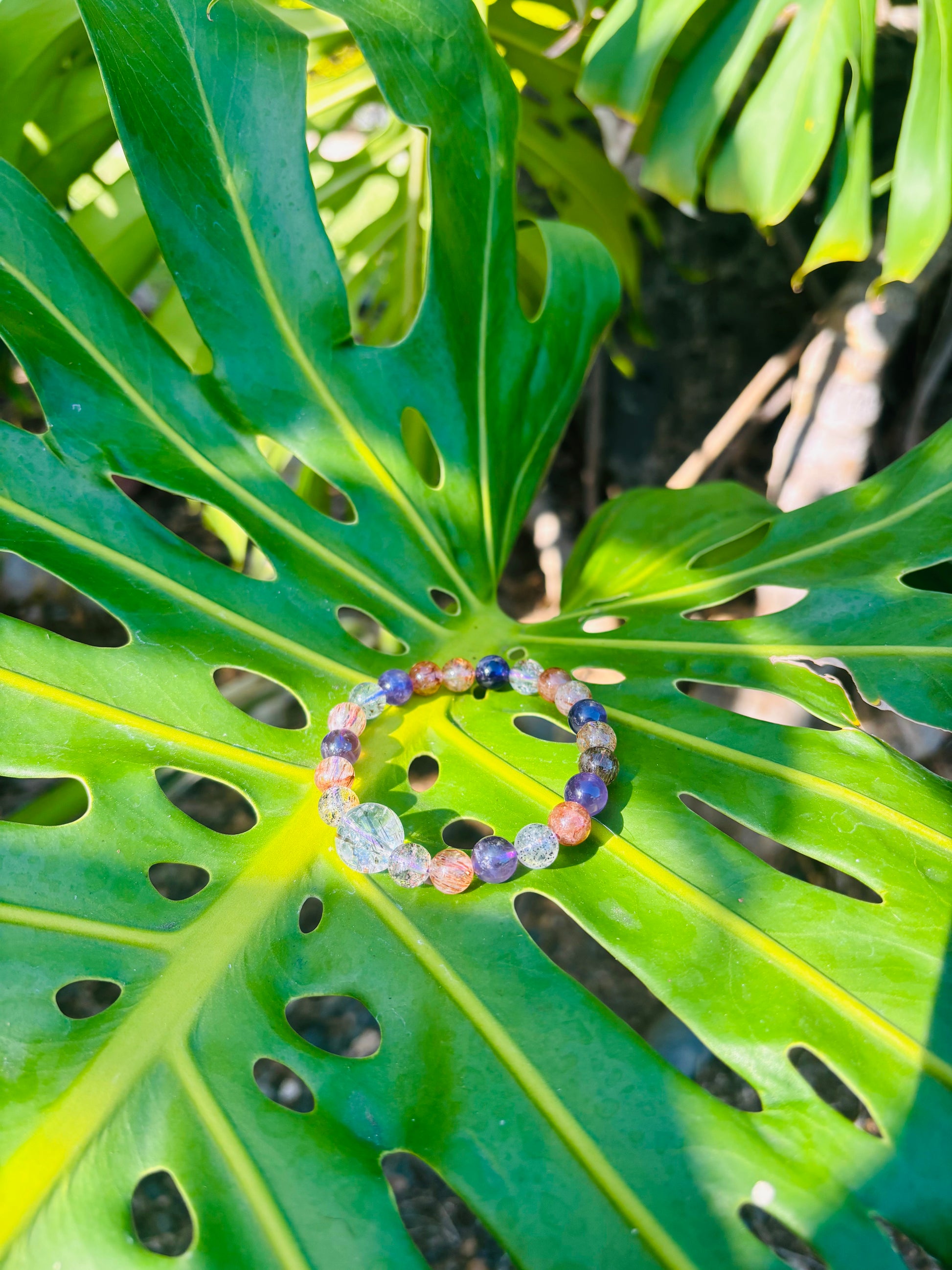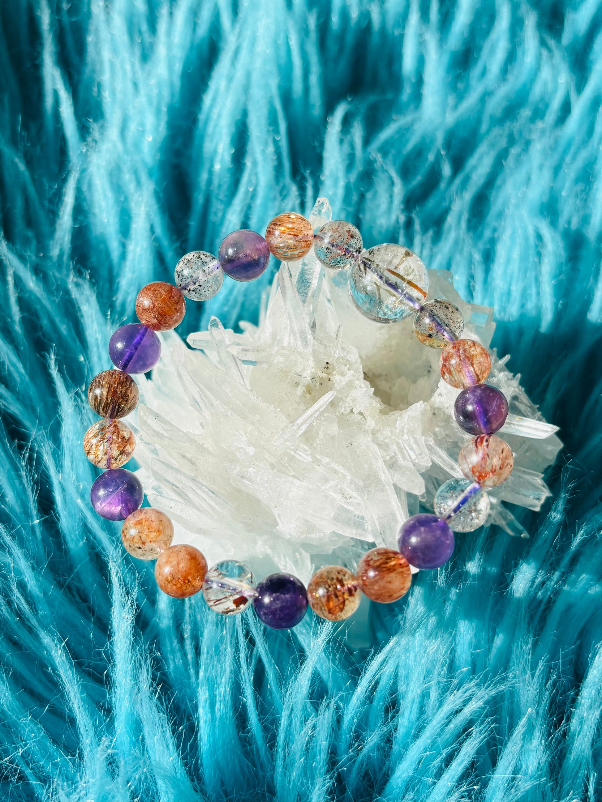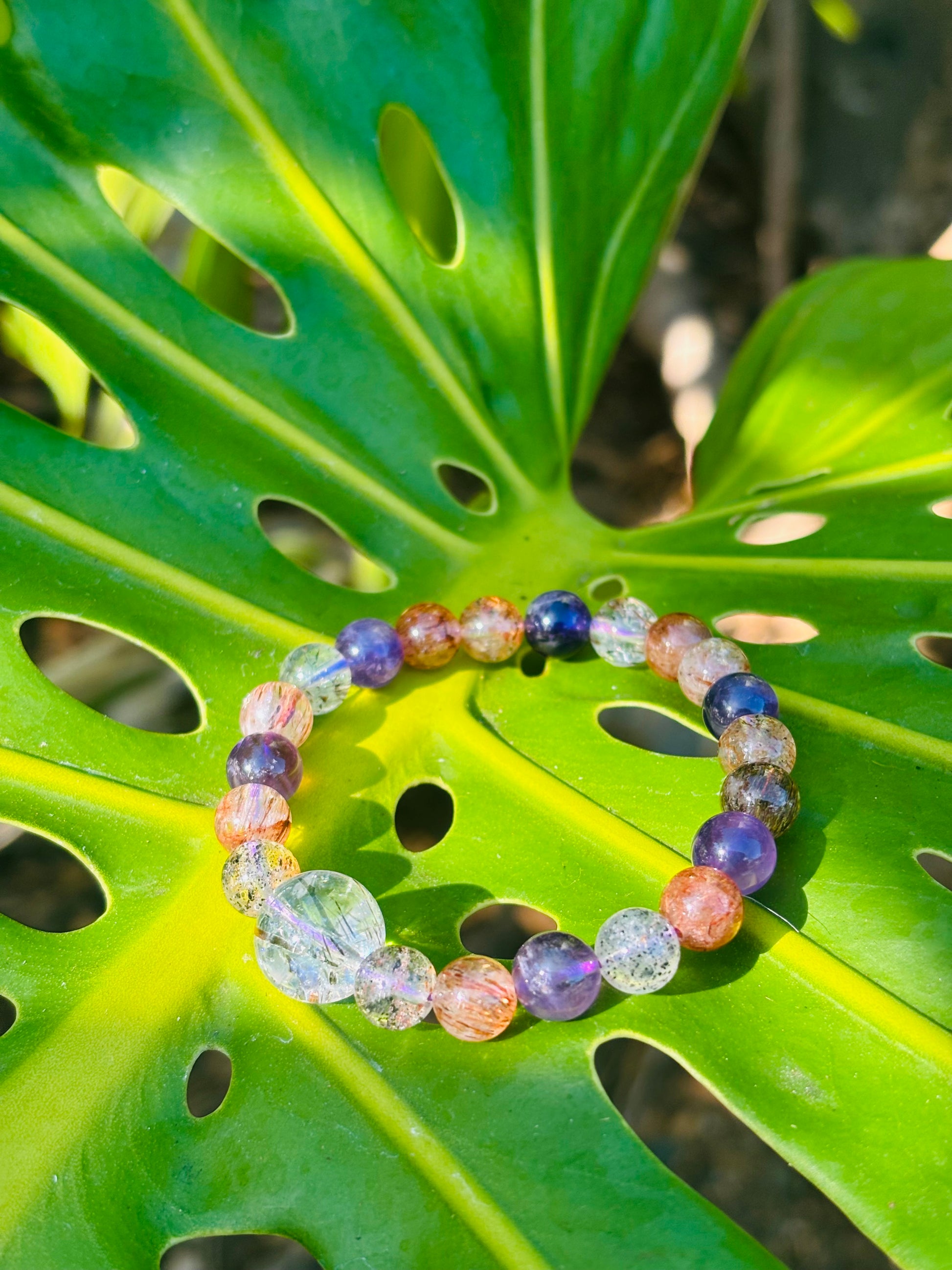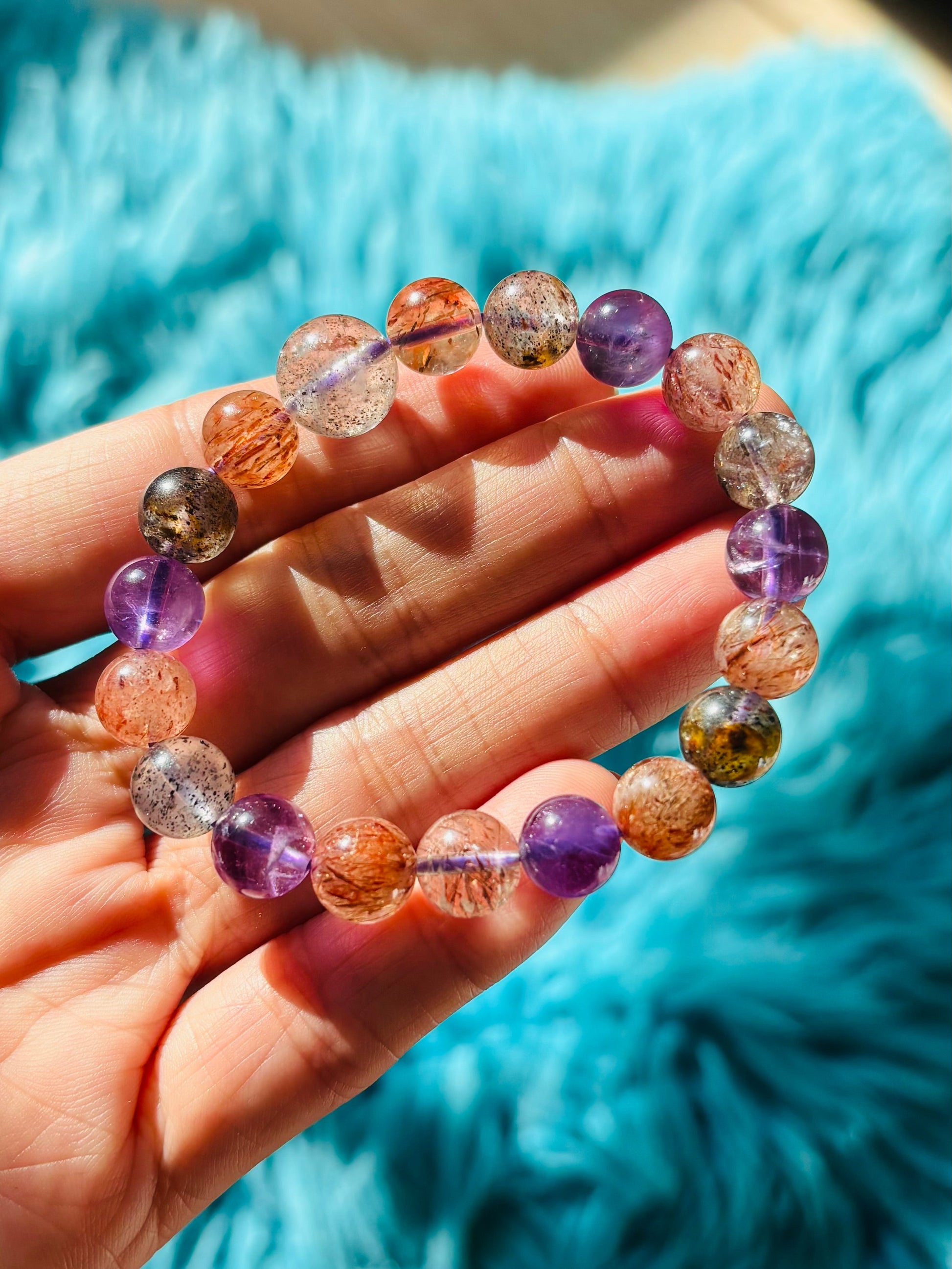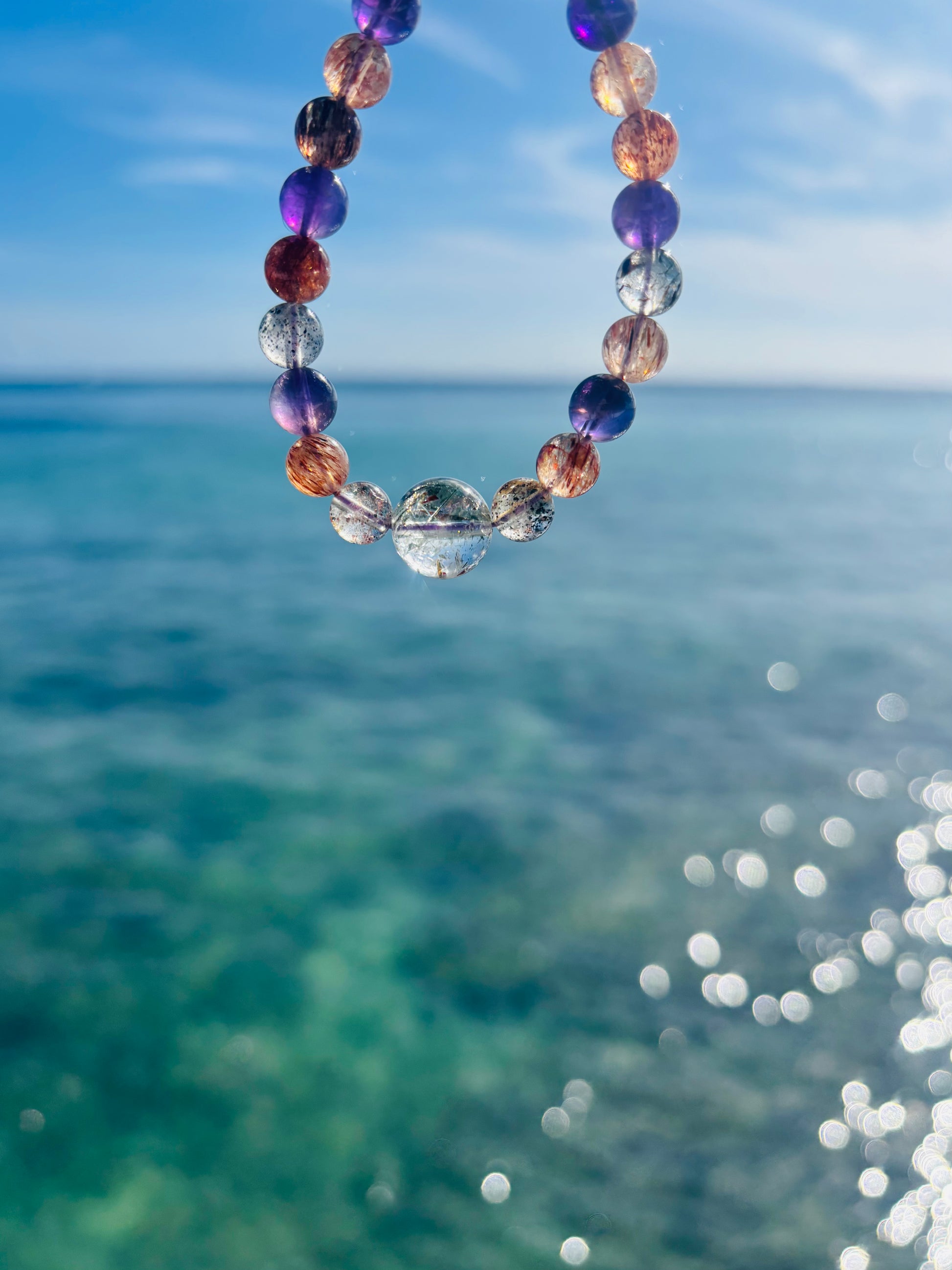 - スパーセブンは、この石は7種類の鉱物からなるレアな鉱物です。スーパーセブンの中のインクルージョンがしっかり詰まっていてキラキラの輝きがあります。太陽の光でご覧になるとさらに良さが分かります。ヒーリング効果が高いとされ、地球上の全てのものを癒すといわれています。過去のつらい出来事、トラウマを克服し、苦痛を和らげ力強い活力を与えます。