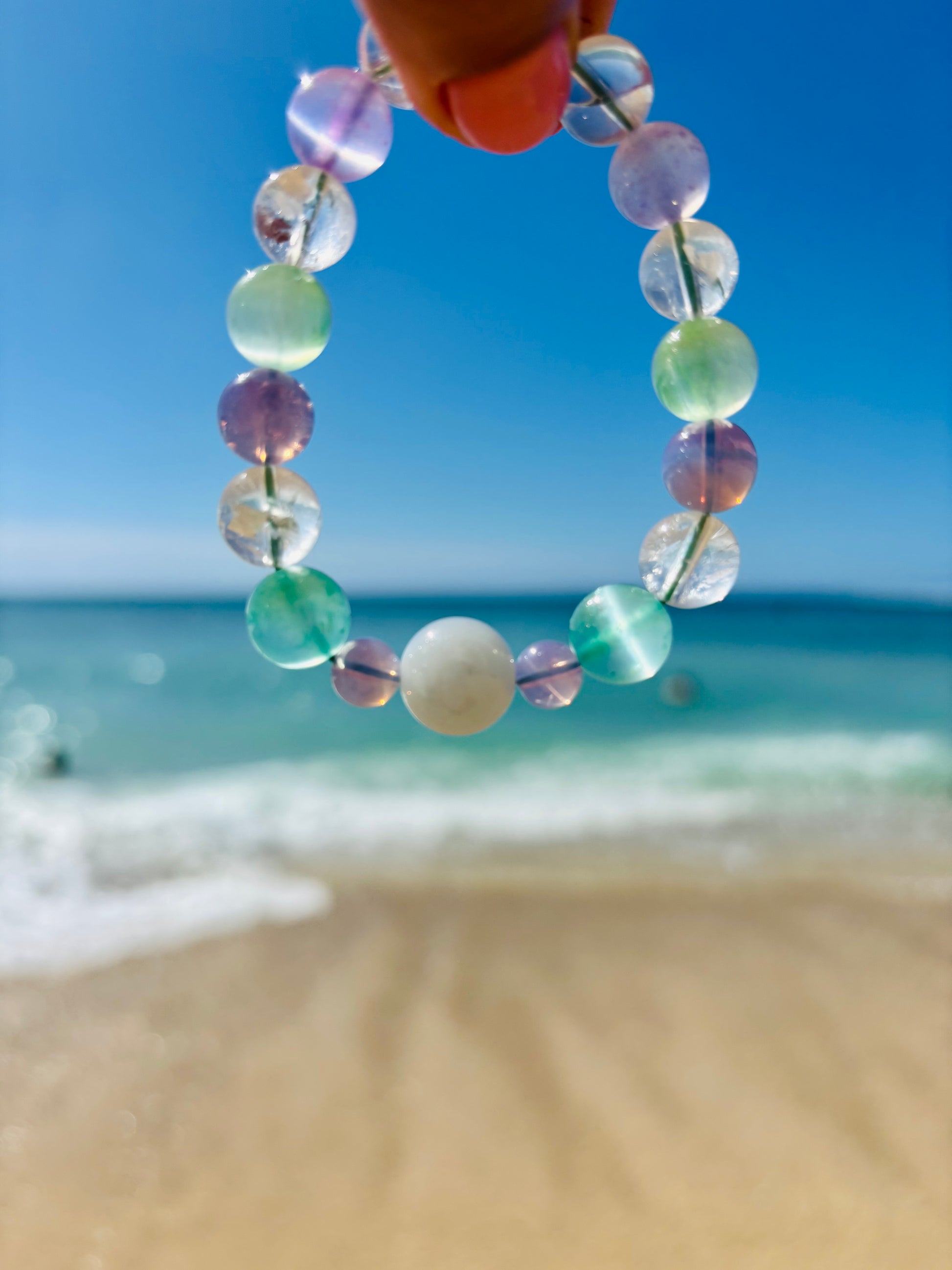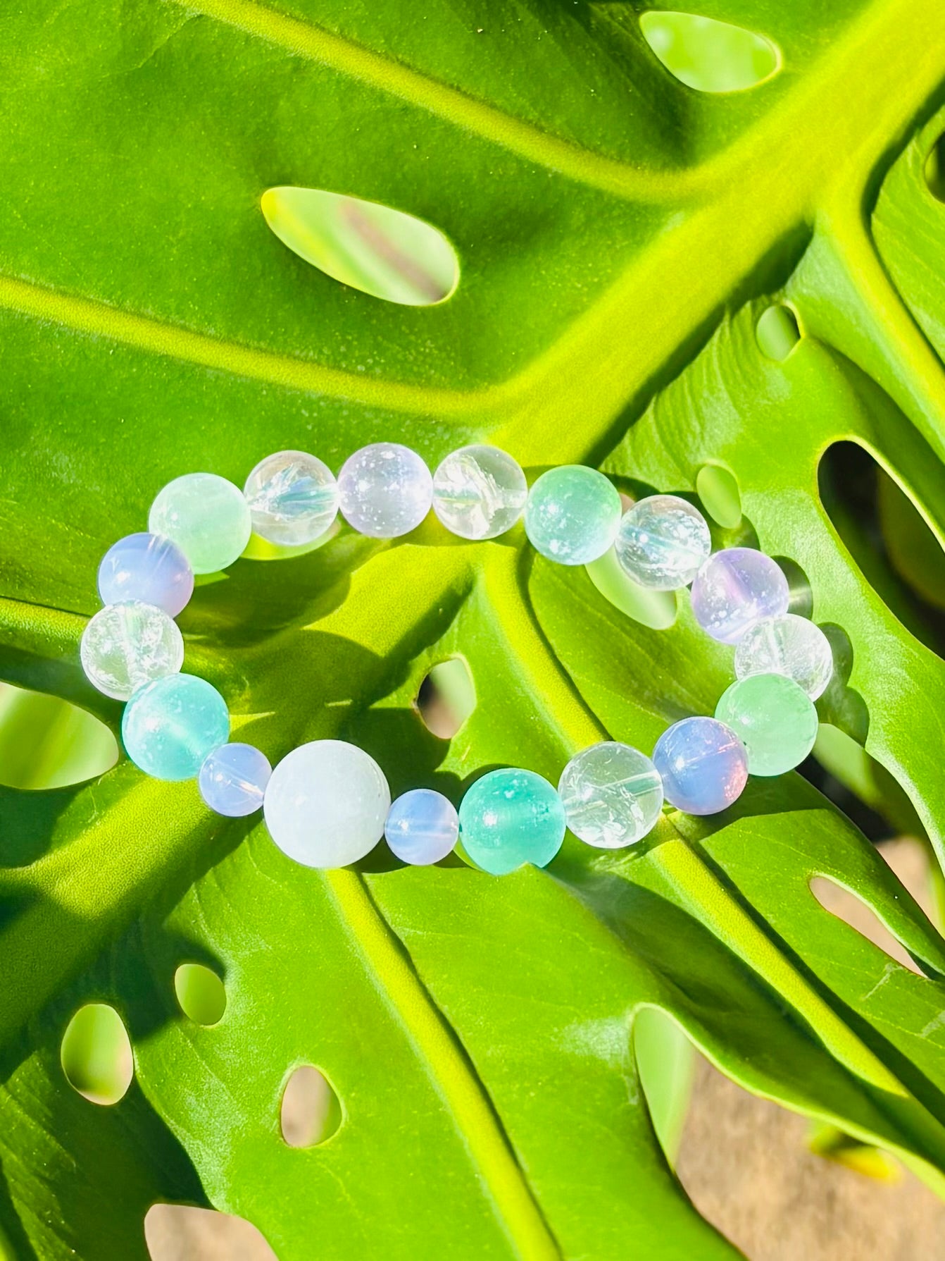 ラベンダークォーツ、セレナイト、レインボーローズクォーツ使用