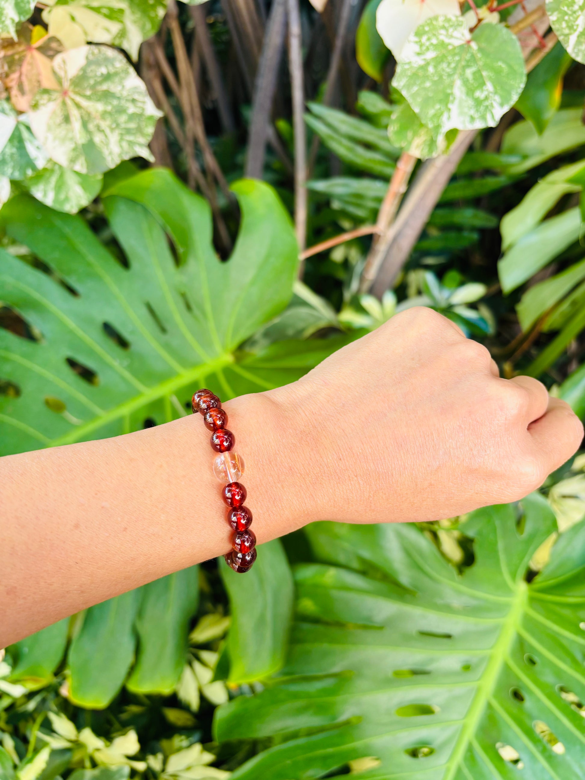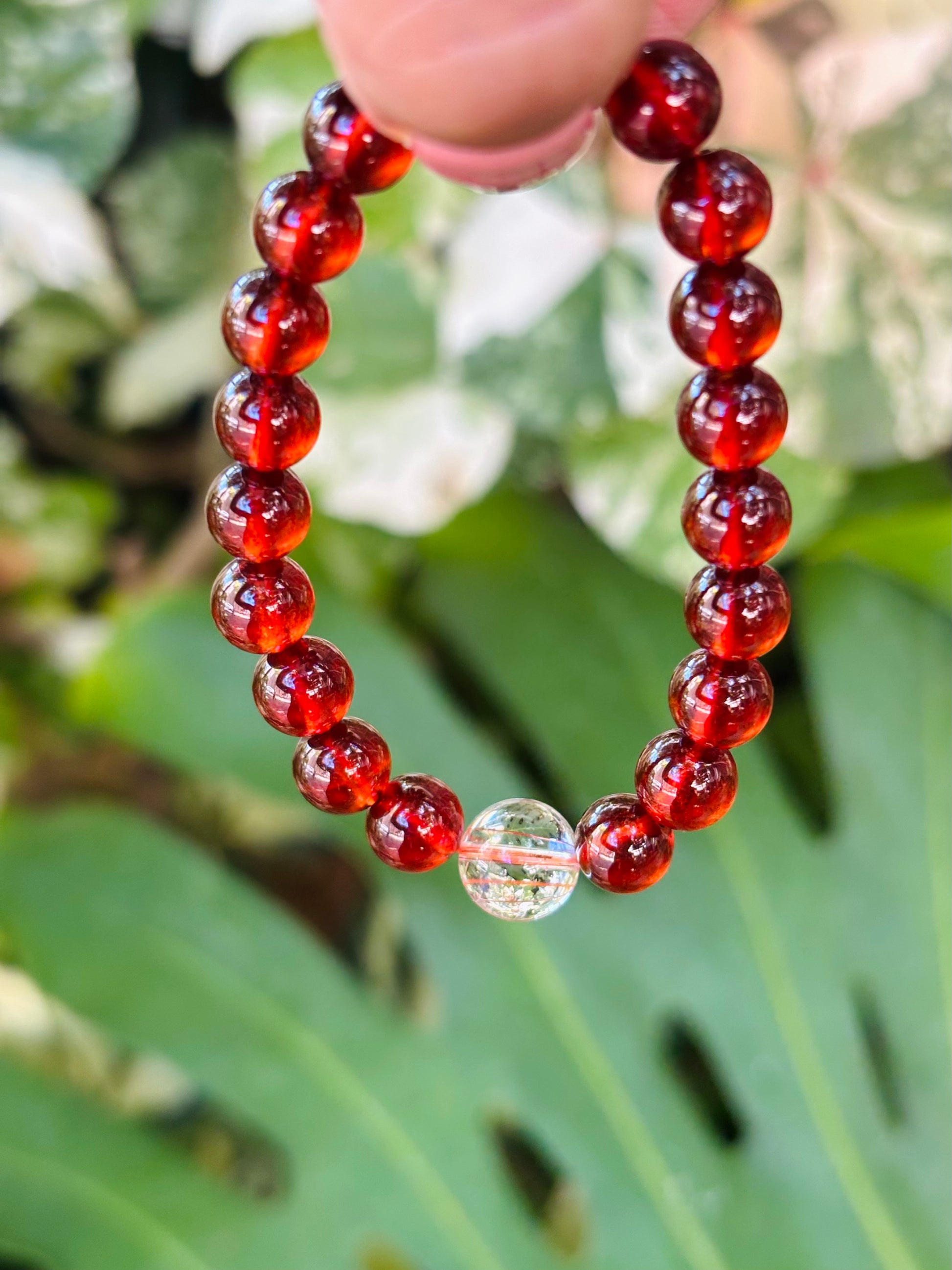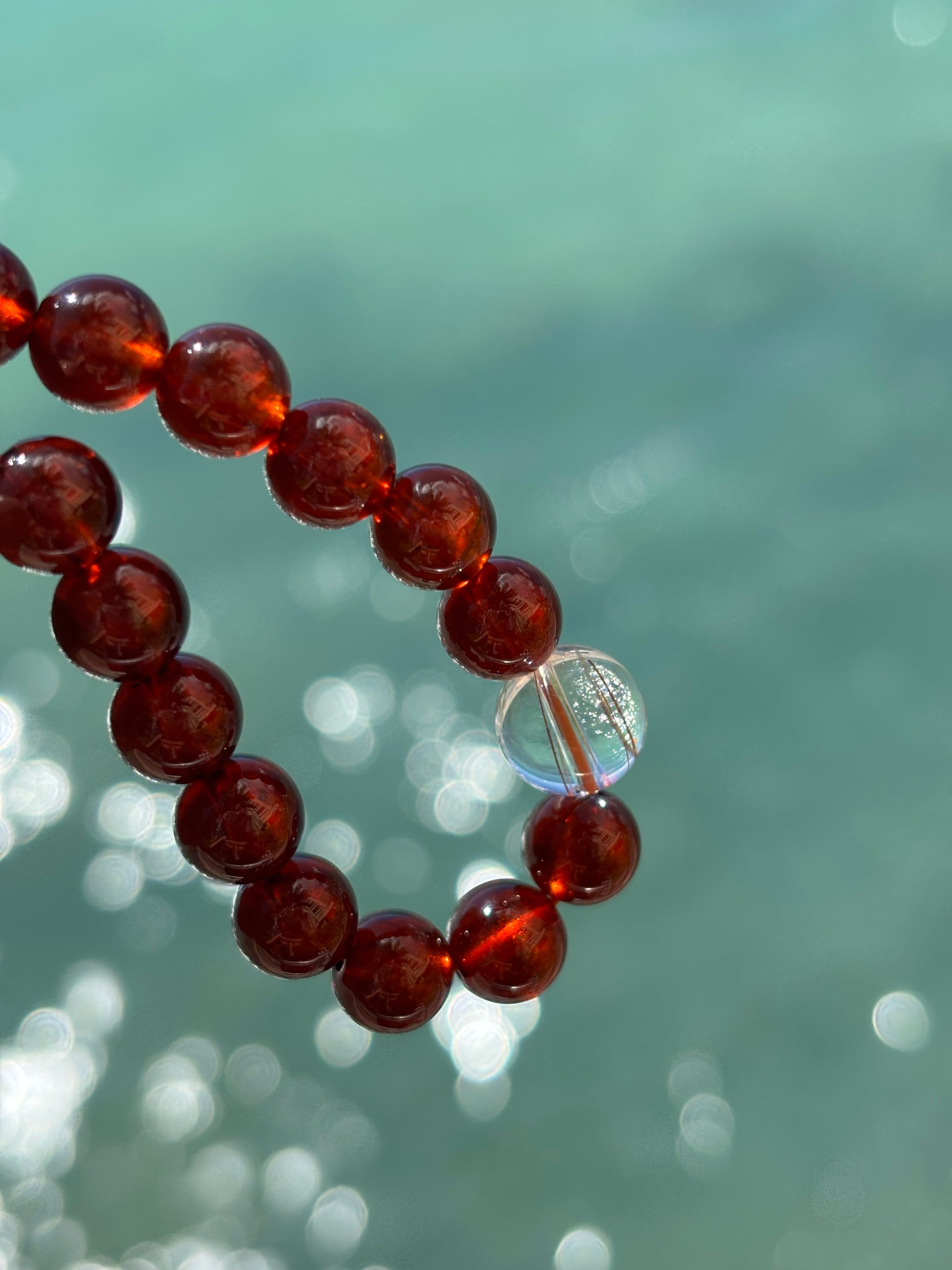極上の大変美しいガーネット8mmにルチルクォーツ10mmを親玉にしました。