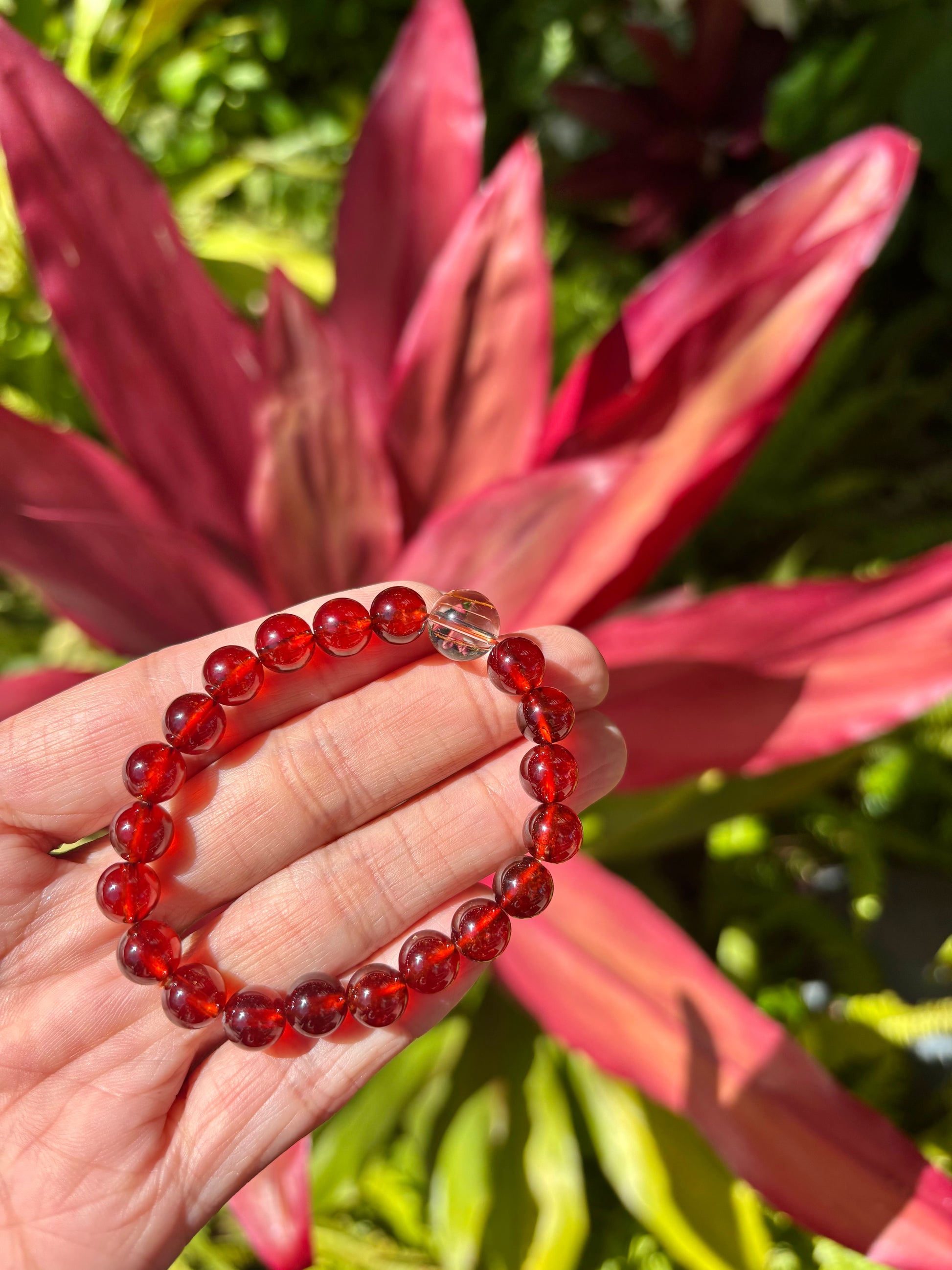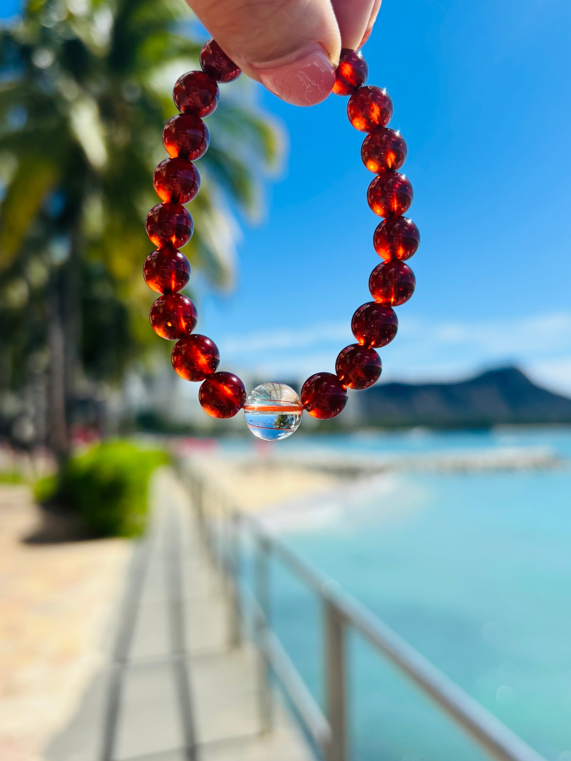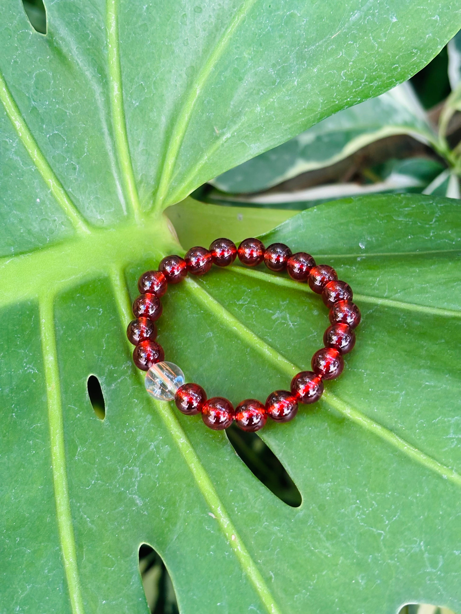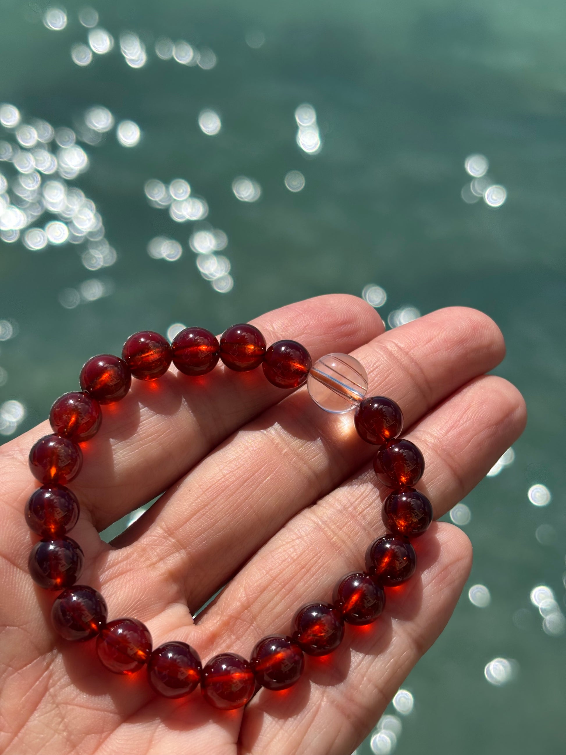 極上の大変美しいガーネット8mmにルチルクォーツ10mmを親玉にしました。
