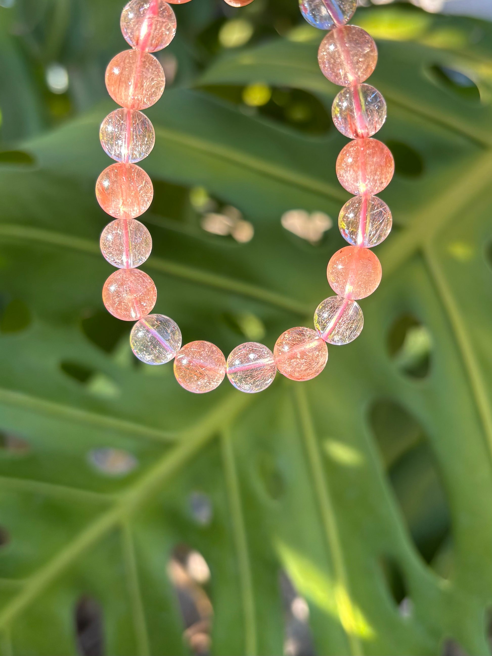見た目が異なるピンクルチルクォーツを交互に組み合わせました。