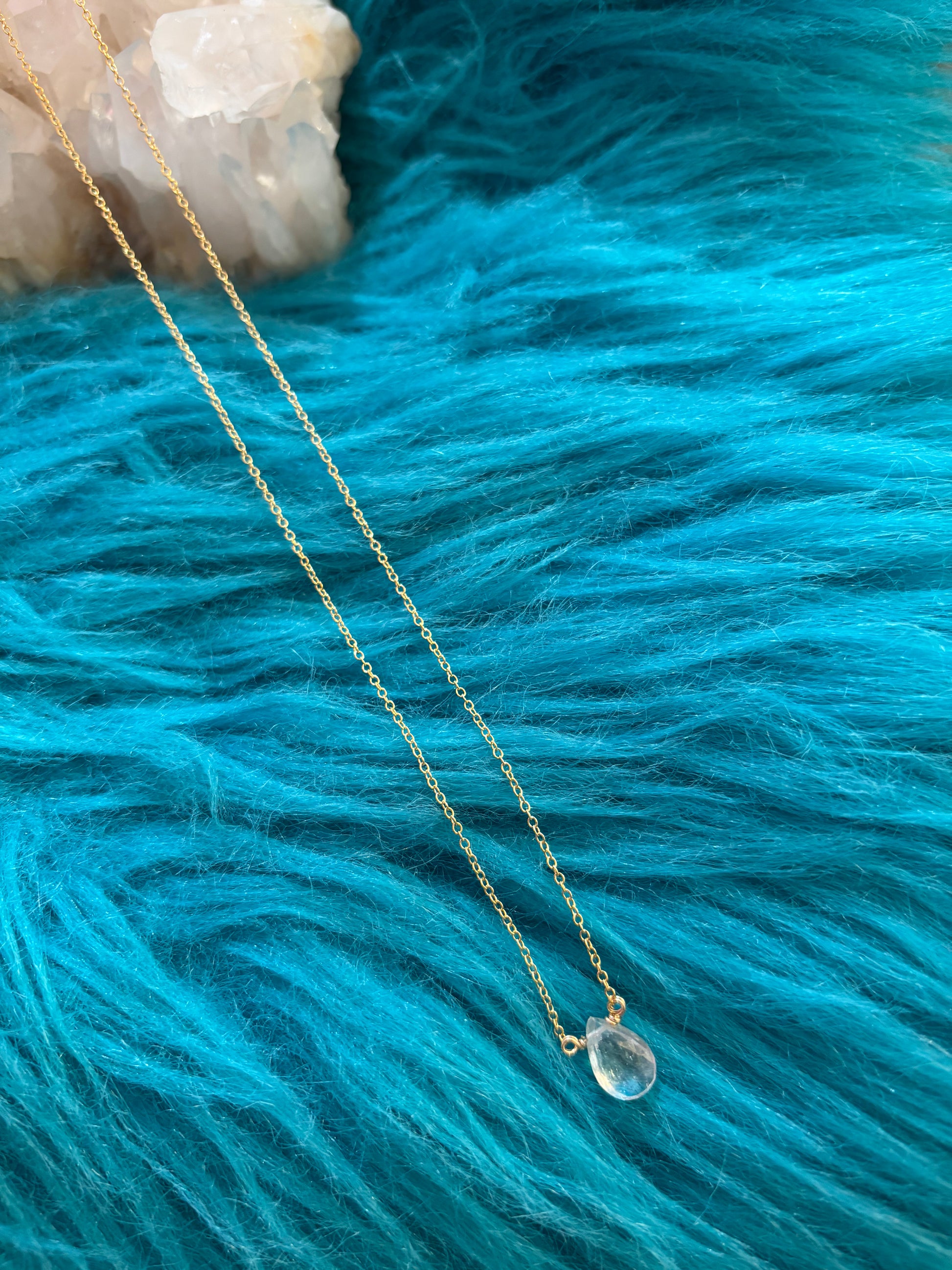 このネックレスはトパーズと14金ゴールドフィルドのチェーンとパーツで構成されています。シンプルなデザインは驚くほど合わせやすいのでどんな場面にもエレガントに活躍できるネックレス。