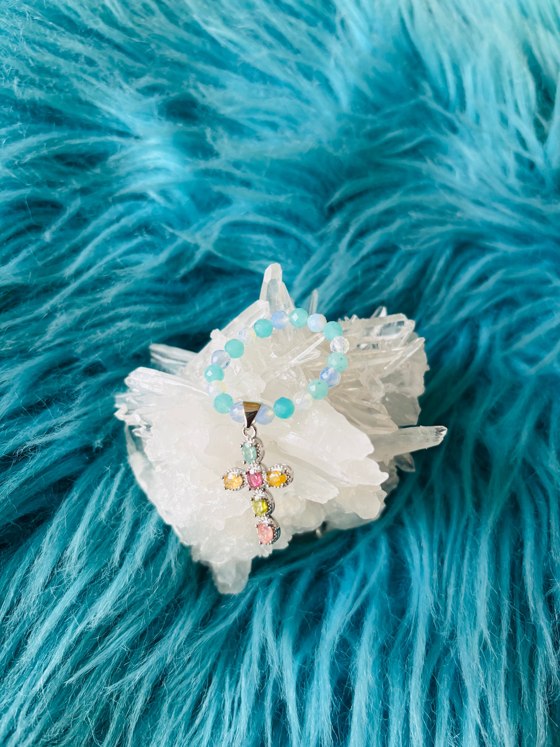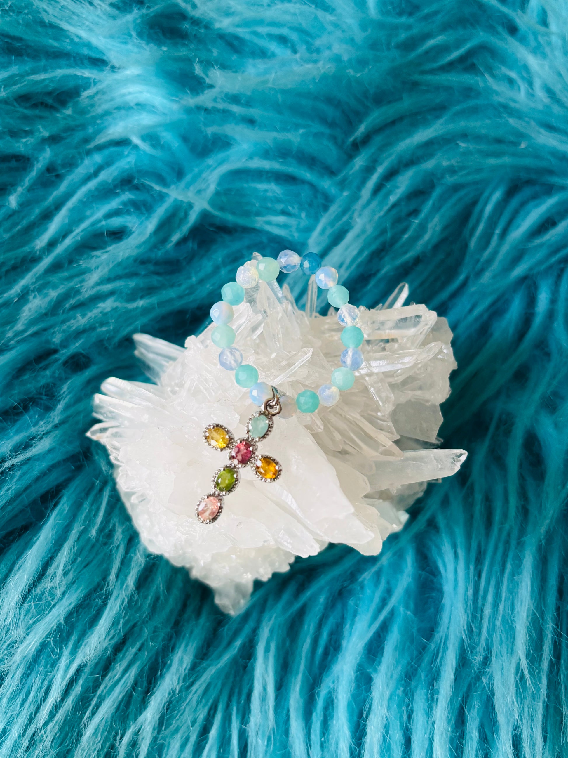 優しい乳白色と虹色の輝きが、心の緊張やストレスを和らげ、穏やかな気持ちに導くと言われています。 -